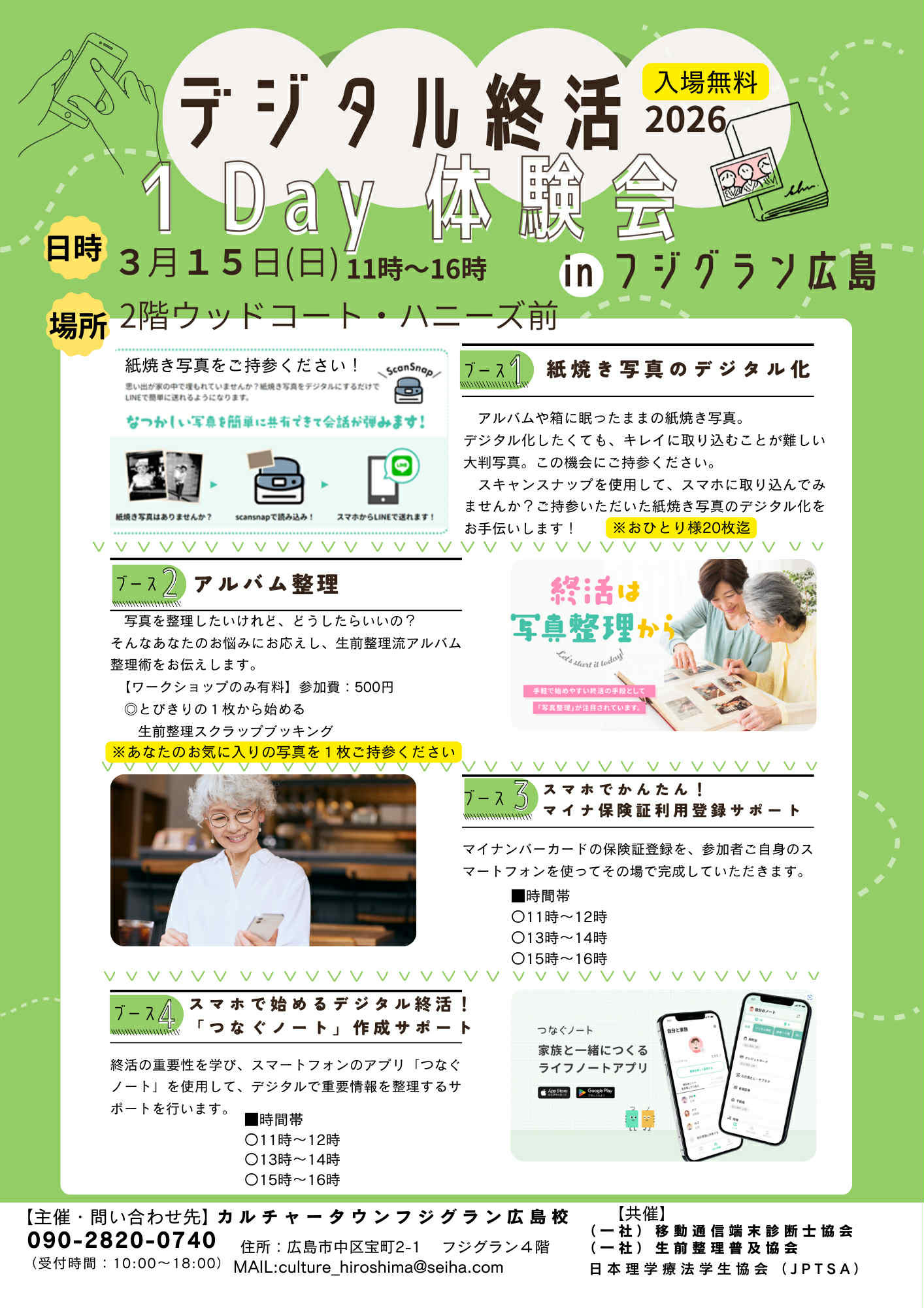デジタル終活1Day体験会 in フジグラン広島に出展します!